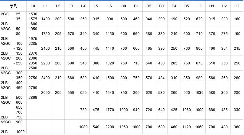 2LB和2GC — 表示臥式雙螺桿泵